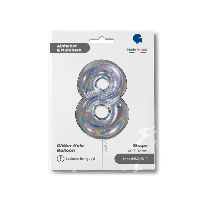 NUMERO 8 ARGENTO HOLOGRAPHIC cm.102