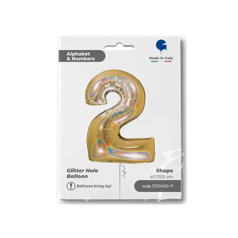 NUMERO 2 ORO GLITTER HOLOGRAPHIC cm.102