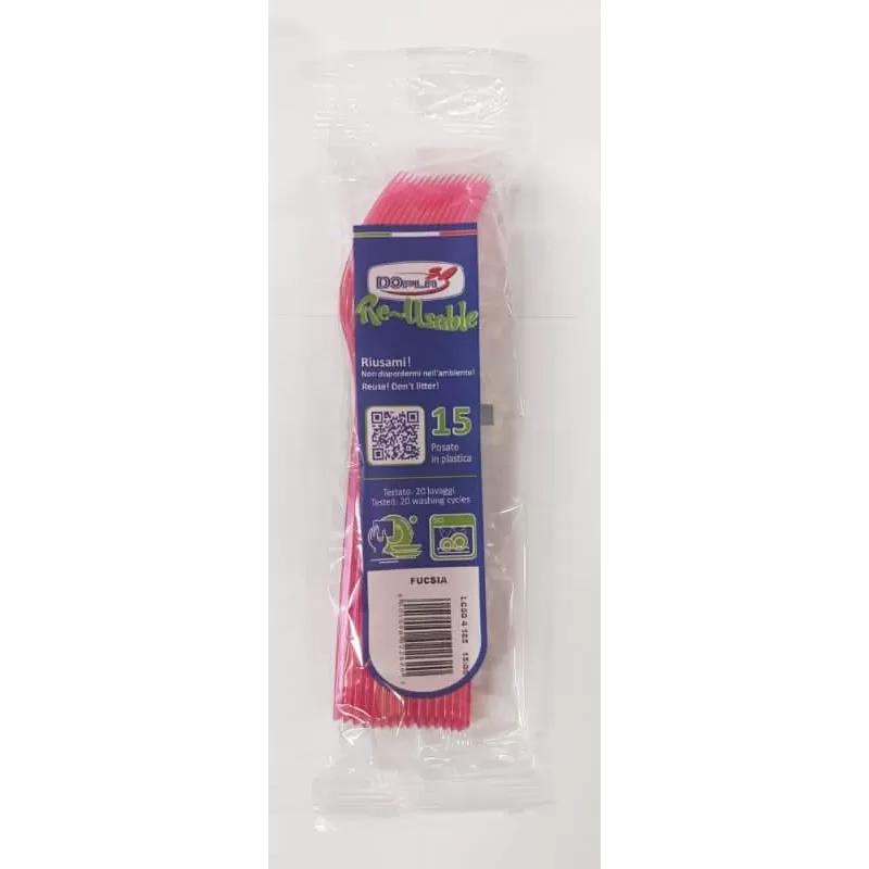 15 FORCHETTE DI PLASTICA FUCSIA LAVABILI RIUTILIZZABILI